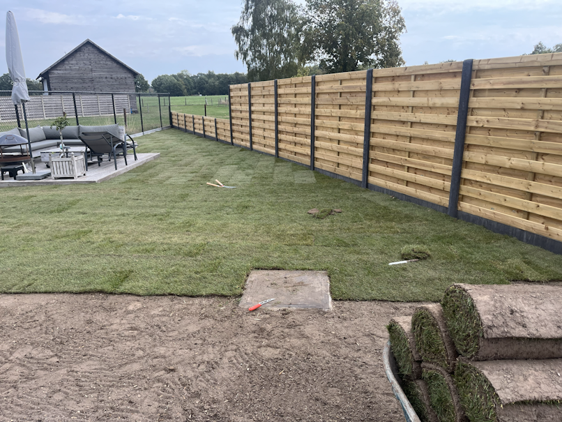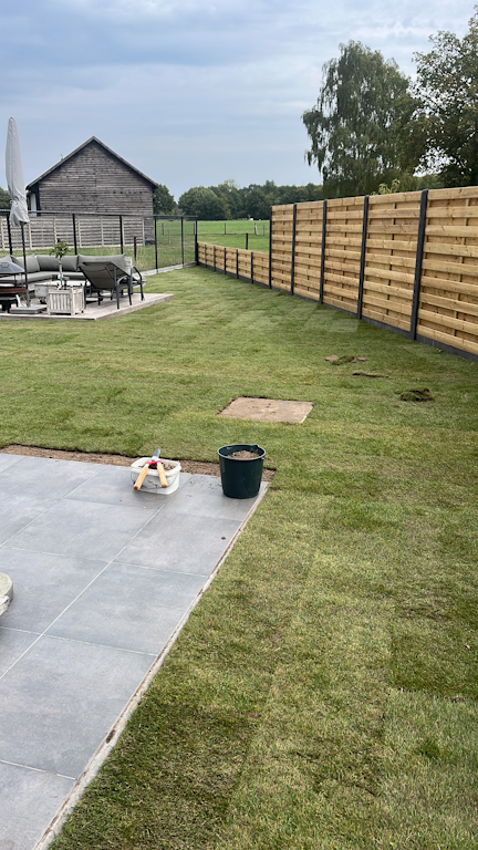 Voor dit project hebben we nieuwe grasplaten geplaatst en naadloos geïntegreerd in het bestaande gazon. Het resultaat is een stevige, groene ondergrond die zowel mooi oogt als extra draagkracht biedt. Perfect afgewerkt en klaar voor jarenlang gebruik.